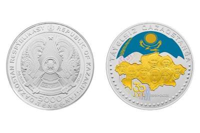 面值为5000坚戈、500坚戈以及100坚戈的《独立哈萨克斯坦30周年》银质和白铜纪念币属于《难忘历史和伟大人物》系列。