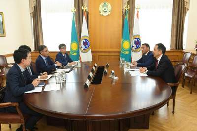 哈通社/阿拉木图/7月31日—阿拉木图市市长巴赫特詹·萨金塔耶夫日前会见韩国驻阿拉木图总领事金兴洙(KIM Hiuenh-Soo)。