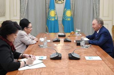 哈通社/努尔苏丹/12月9日 —— 据首任总统新闻处消息,哈萨克斯坦首任总统努尔苏丹·纳扎尔巴耶夫9日接见了著名文化功勋人士毕布古勒·托列艮诺娃。