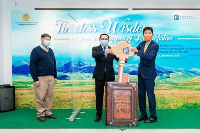 活动框架下,香港大学图书馆收到了英语、汉语和葡萄牙语版关于哈萨克斯坦及其杰出历史人物书籍集。