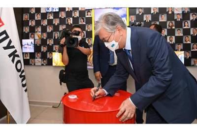 托卡耶夫总统参观阿拉木图州卢克伊尔润滑油公司