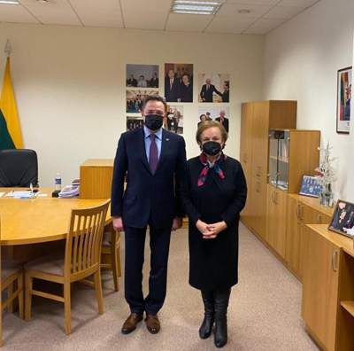 哈通社/努尔苏丹/2月11日—哈萨克斯坦驻立陶宛大使维克托·铁穆尔巴耶夫日前会见立陶宛议会外交事务委员会主席新任主席莱玛·安德里肯。