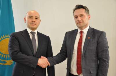 哈通社/努尔苏丹/3月2日--哈萨克斯坦国家经济部长兼哈萨克斯坦-马其顿政府间委员会联合主席阿勒别克·库安特洛夫1日会见北马其顿驻哈萨克斯坦特命全权大使萨利·利马尼。
