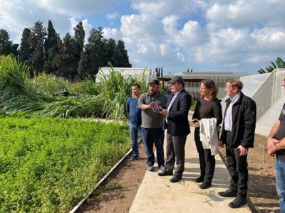 参观期间,以色列耐特菲姆公司区域经理佐哈尔·齐夫、基布兹行业协会国际贸易部主任米歇尔·佐兰以及Mapalagro、AgroScout、Tal-Ya等农业技术企业主管向萨特巴勒德·布尔沙科夫介绍了高科技智能温室和常用先进灌溉解决方案。