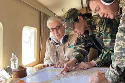 托卡耶夫总统乘直升机空中视察塞梅林火灾区
