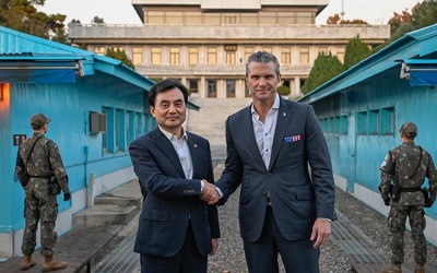 这是韩美防长自2017年后时隔8年再次共同视察共同警备区。安圭伯和赫格塞思视察非军事区(DMZ)韩方一侧最北端的哨所,听取作战现况汇报,并访问板门店内部的会场。两国防长借此确认坚固的韩美联合防卫态势和韩美合作意愿。