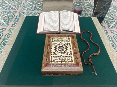 —这串赞珠共有99颗,与真主的99个尊名相对应。它是由一位来自巴甫洛达尔的排爆专家捐赠的。他在伊拉克巴格达执行任务时,在一座清真寺的废墟下发现了这串赞珠。清真寺的伊玛目十分高兴,将其作为礼物送给了他。这串赞珠上刻有《雅辛章》。过去,人们常将古兰经的章节刻在树皮、皮革或陶土上。尤其是《雅辛章》,常被用来净化住宅、驱除疾病与恶意。-穆拉特·埃米尔詹诺夫补充说。