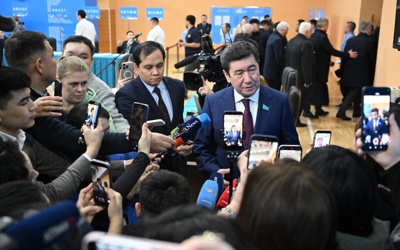 (哈萨克国际通讯社讯)哈萨克斯坦马吉利斯(议会下院)议长叶尔兰·霍沙诺夫在就新宪法举行的全民公投中完成投票。