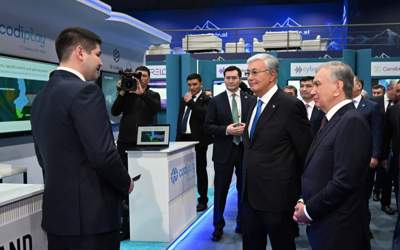 (哈萨克国际通讯社讯)据总统府新闻局消息,哈萨克斯坦总统哈斯穆-卓玛尔特·托卡耶夫29日与乌兹别克斯坦总统沙夫卡特·米尔济约耶夫一同参观了“AlmatyFair.ai”展览。
