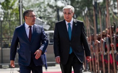 (哈萨克国际通讯社讯)吉尔吉斯斯坦总统萨德尔·扎帕罗夫8月22日在总统府为到访的哈萨克斯坦总统哈斯穆-卓玛尔特·托卡耶夫举行了隆重的欢迎仪式。