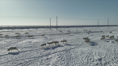 因降雪南迁觅食 数万只高鼻羚羊进入锡尔河流域