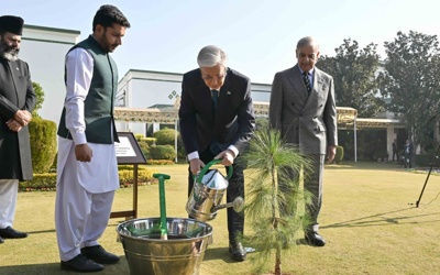 托卡耶夫总统在巴基斯坦总理官邸植树留念