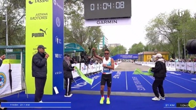 (哈萨克国际通讯社讯)据斜体字网站报道,4月19日上午,阿拉木图市举行了备受瞩目的半程马拉松赛(赛程为21.1公里)。在众多选手参与的激烈角逐中,来自中国的哈萨克族选手阿奴拜克·库弯率先冲过终点线,夺得冠军。