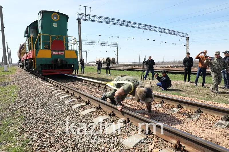 哈萨克斯坦大力士拖动148吨机车和车厢创造全国记录