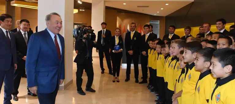 访问最后,纳扎尔巴耶夫总统祝愿小球员们身体健康,并在体育赛场上取得巨大的成就。