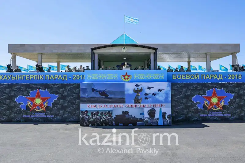 据悉,武装力量7日在江布尔州"沃塔尔"军事基地举行火力展示演戏和阅兵仪式。共有3000名官兵,300台军事技术装备和30架战机参加本次阅兵仪式。