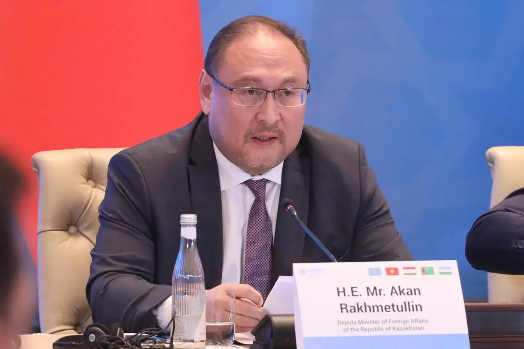 哈通社/努尔苏丹/11月25日--哈萨克斯坦外交部副部长阿汗·热赫梅图林出席联合国毒品和犯罪问题办公室2022-2025年中亚新方案签署仪式。