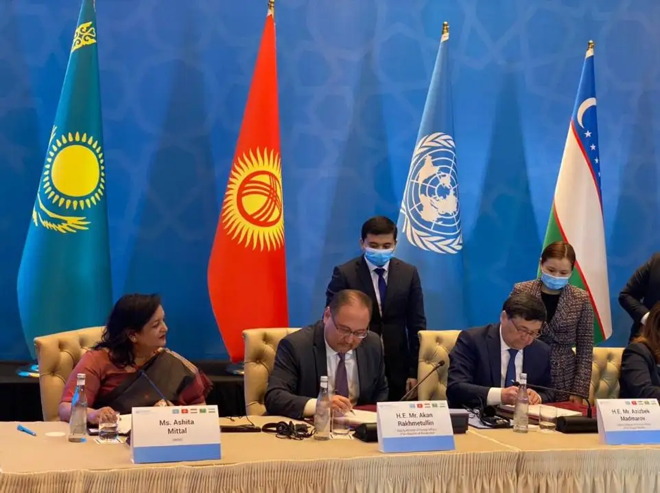 吉尔吉斯斯坦、塔吉克斯坦、土库曼斯坦和乌兹别克斯坦的外交部长,以及对中亚进行首次正式访问的联合国副秘书长兼联合国维也纳办事处总干事和联合国毒品和犯罪问题办公室(UNODC)执行主任加黛·瓦利出席新方案签署仪式。