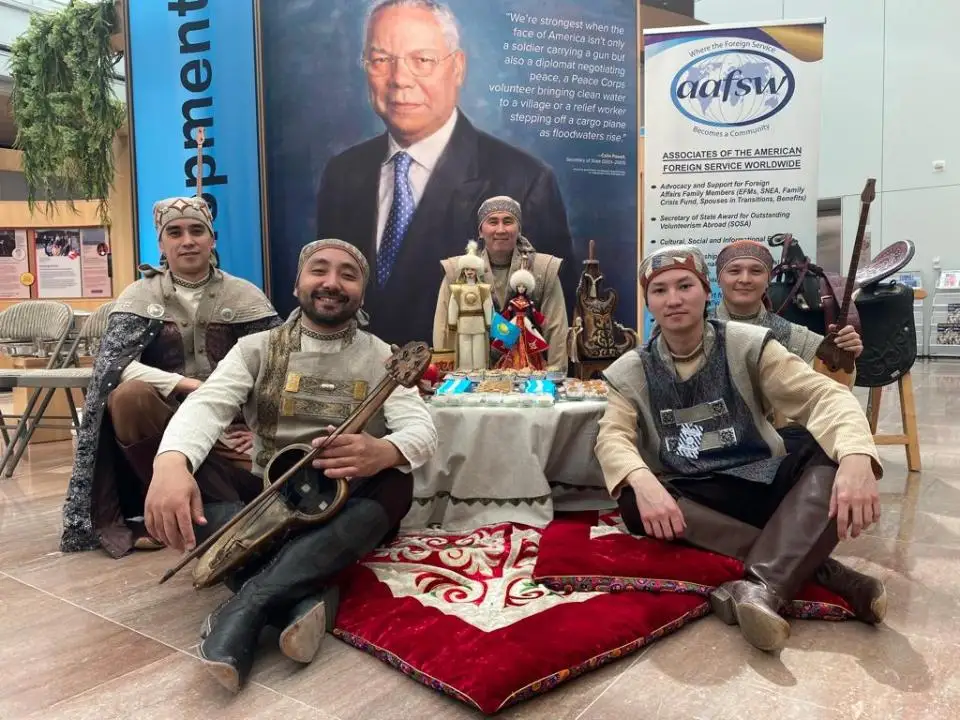 应哈驻美大使馆之邀,哈萨克斯坦若扎·巴格拉诺娃“QAZAQSTAN”剧院图兰民族音乐乐团参加活动献上精彩民乐表演。他们演奏传统乐器,展示古老呼麦技艺。他们精湛的演奏和表演赢得了在场美国观众热烈掌声。